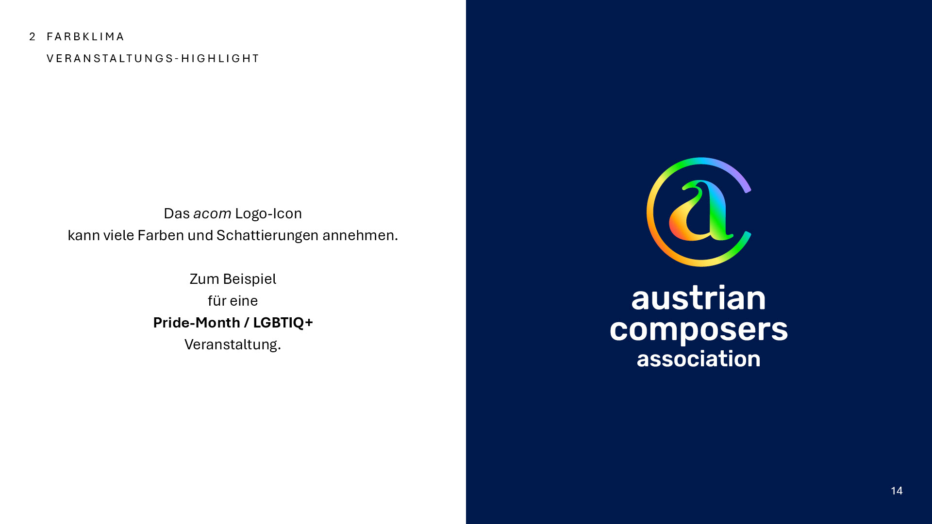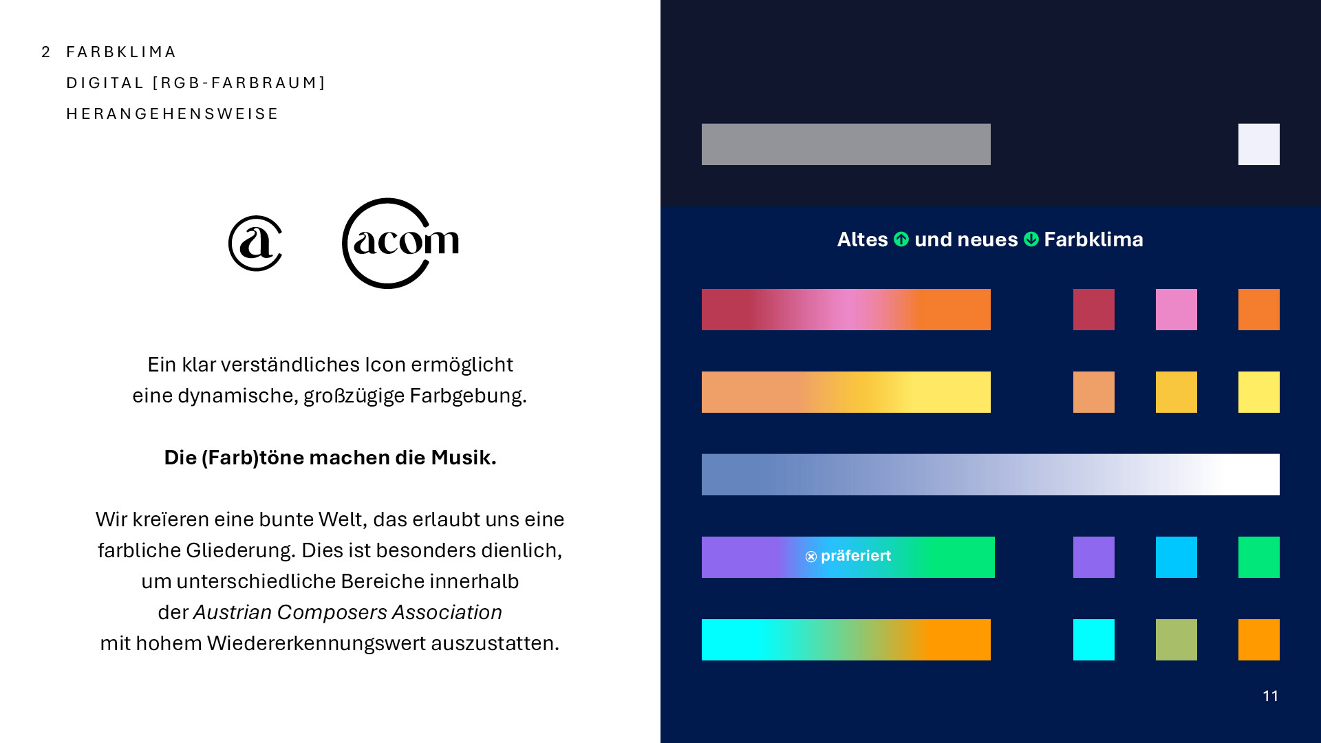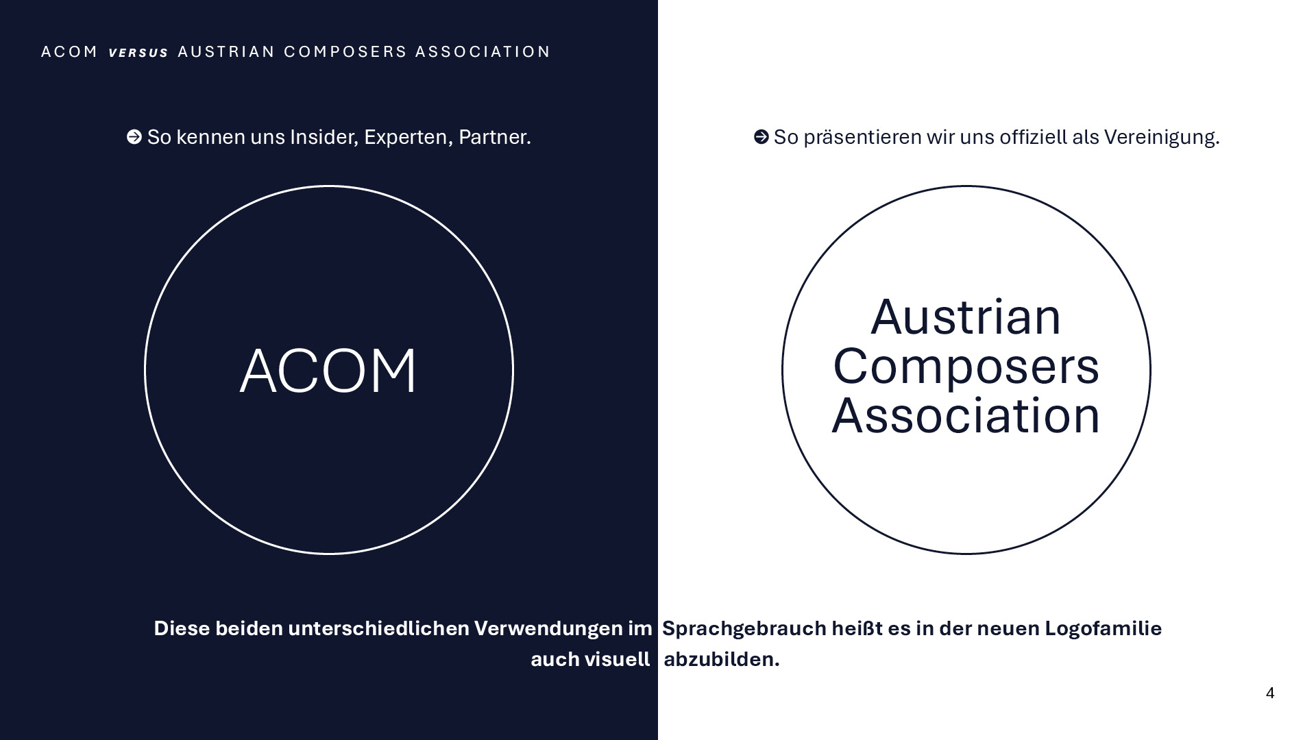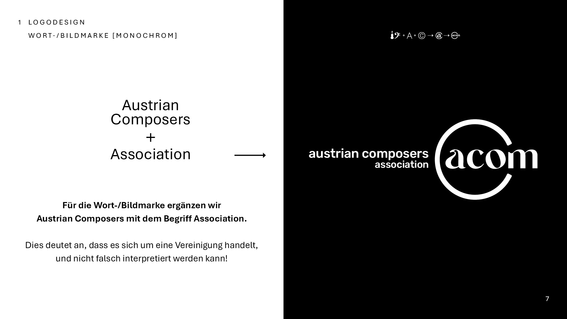 I was invited to present a redesign concept for their visual identity. The initial presentation — shown here in 24 slides — was already very close to the final version that was later implemented. During the presentation to the board, it became clear that the “acom” ‘a’ should play a more subtle role, while the wordmark ACOM should take center stage, as this abbreviation is the primary term used and recognized within the community. Additionally, the board requested a small adjustment to the upper curve of the letter ‘a’. You can scroll down to compare this initial proposal with the final version.
