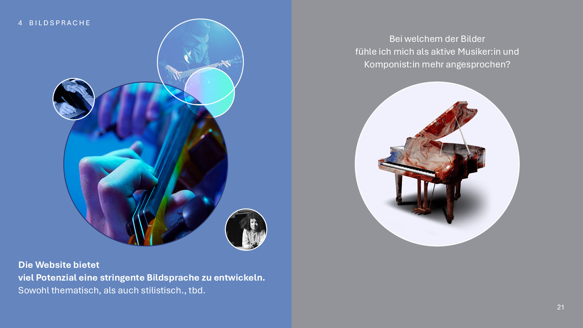 The color concept is also still in development. There is an ongoing exploration of broader color variations to better distinguish between different musical genres.