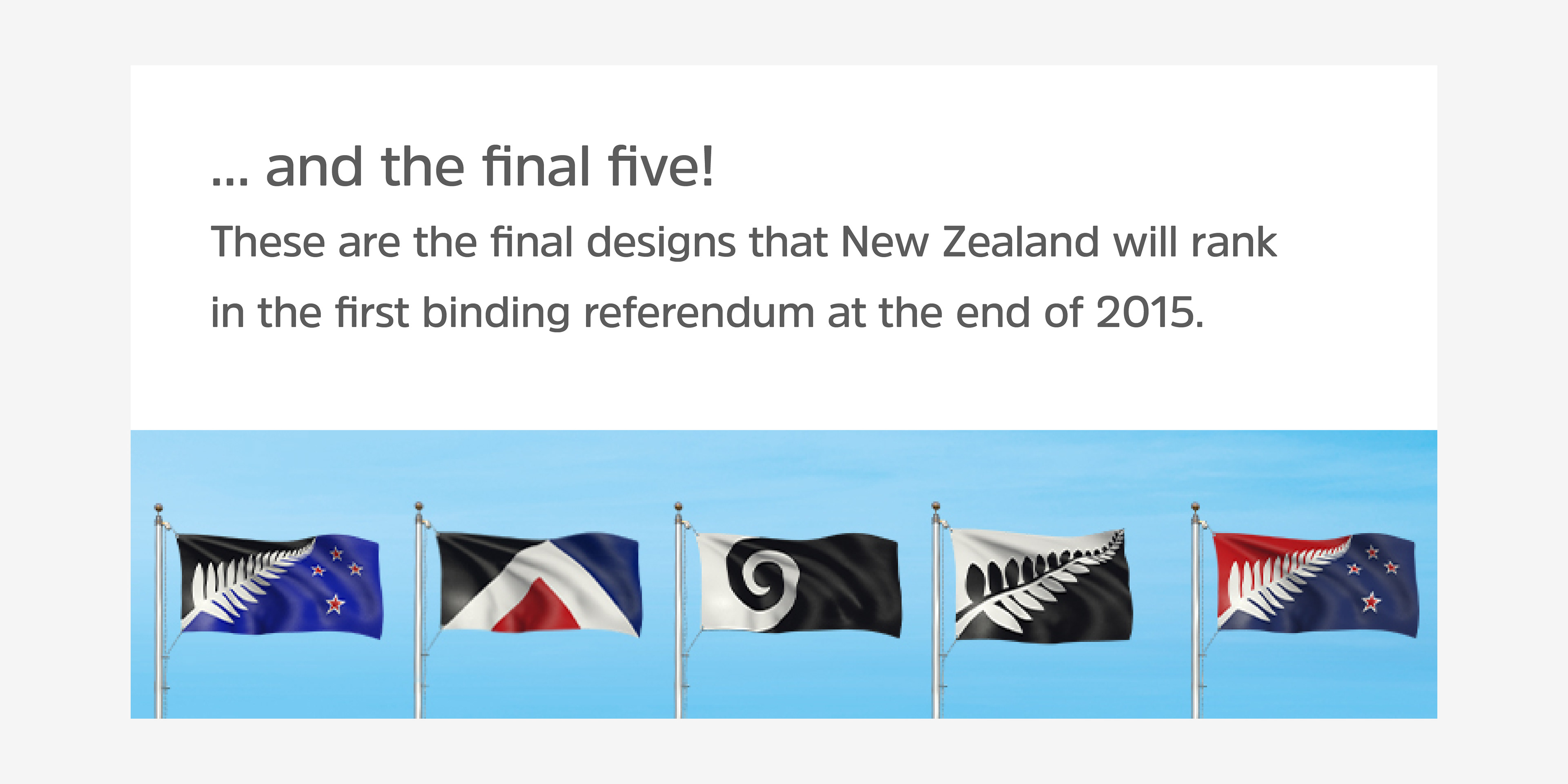 Two referendums were held by the New Zealand Government in November / December 2015 and March 2016 to determine the nation’s flag. In the first referendum, voters selected their preferred alternative design. The winning design then advanced to the second referendum, where it competed against the existing New Zealand flag. The result: voters chose to retain the current national flag.
